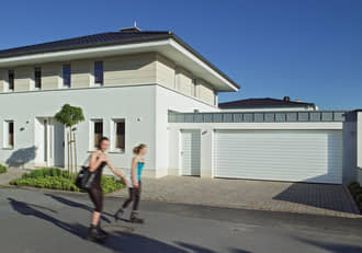 Hörmann предлага подходяща странична врата към почти всеки мотив гаражна врата. Така гаражната и пешеходната врата изглеждат хармонично.